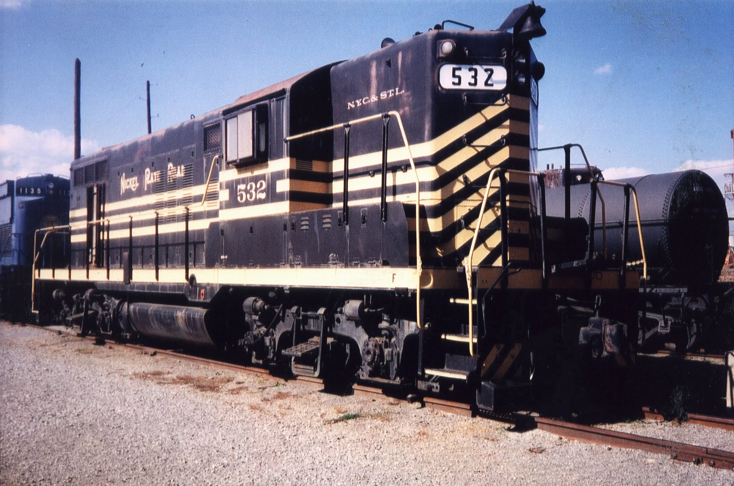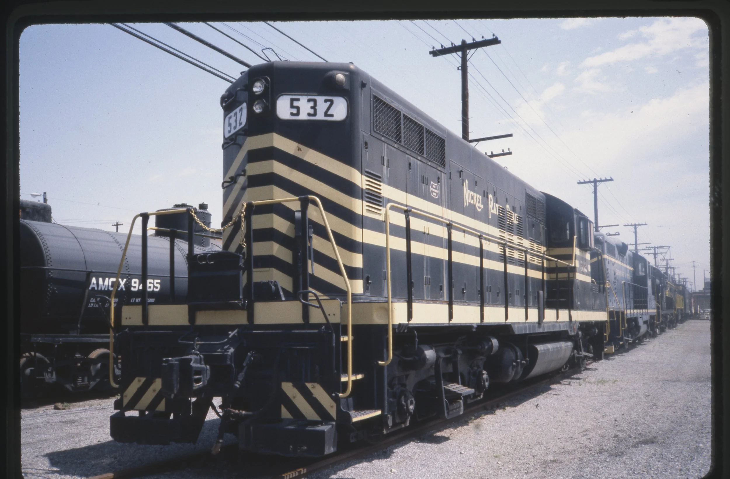 Nickel Plate Road GP9 #532, builder # #25075. was built at the EMD plant in LaGrange Illinois in late 1958, being placed into service by the NKP on January 17, 1959 at Frankfort Indiana; It was assigned engine class # ERS17f and was considered a Phase IV GP9 with the two larger 48” radiator fans replacing the four 36” fans. These locomotives were numbered 510 to 534 and 810 to 814 by the NKP. This series of GP9s were the last purchased by the NKP. 532 became N&W 2532 in August of 1966. It became NS 1462 in 1983 and was retired by the NS on April 9, 1984. After retirement 532 was donated to the Virginia Museum of Transportation in December 1984 and later acquired by the Roanoke Chapter of the NRHS.